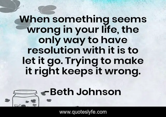 This page presents the quote "When something seems wrong in your life, the only way to have resolution with it is to let it go. Trying to make it right keeps it wrong.". Author of this quote is Beth Johnson. .
