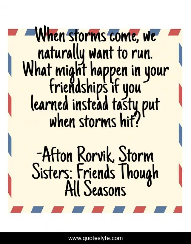 "Afton Rorvik, Storm Sisters: Friends Though All Seasons Quotes." Quoteslyfe.com, 2025. Fri. 05 Dec. 2025. <https://www.quoteslyfe.com/quote/When-storms-come-we-naturally-want-to-51071>.