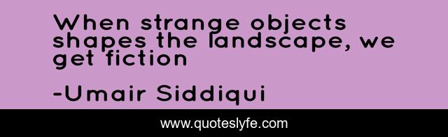 This page presents the quote "When strange objects shapes the landscape, we get fiction". Author of this quote is Umair Siddiqui. This quote is about objects, nature, inspiring-thoughts, science, fiction, quotes, strange, architecture, landscape,.