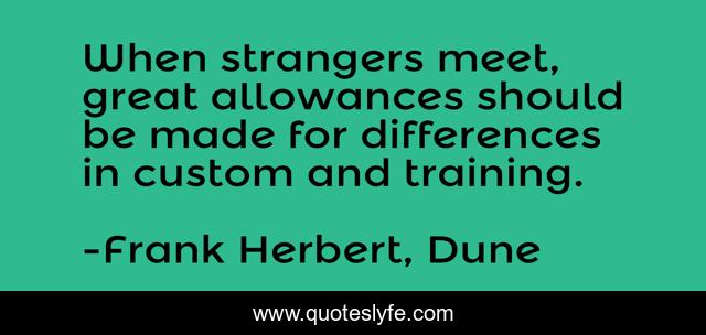 "Frank Herbert, Dune Quotes." Quoteslyfe.com, 2025. Sat. 06 Dec. 2025. <https://www.quoteslyfe.com/quote/When-strangers-meet-great-allowances-should-be-181280>.
