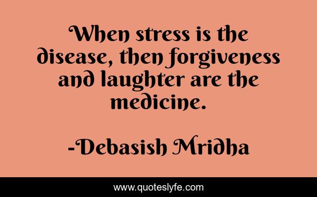 This page presents the quote "When stress is the disease, then forgiveness and laughter are the medicine.". Author of this quote is Debasish Mridha. This quote is about life, love, knowledge, inspirational, intelligence, philosophy, wisdom, quotes, affection,.