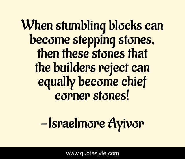 "Israelmore Ayivor Quotes." Quoteslyfe.com, 2025. Sun. 07 Dec. 2025. <https://www.quoteslyfe.com/quote/When-stumbling-blocks-can-become-stepping-stones-129926>.