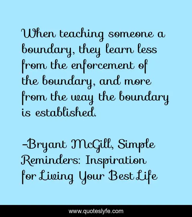 "Bryant McGill, Simple Reminders: Inspiration for Living Your Best Life Quotes." Quoteslyfe.com, 2025. Mon. 08 Dec. 2025. <https://www.quoteslyfe.com/quote/When-teaching-someone-a-boundary-they-learn-117278>.