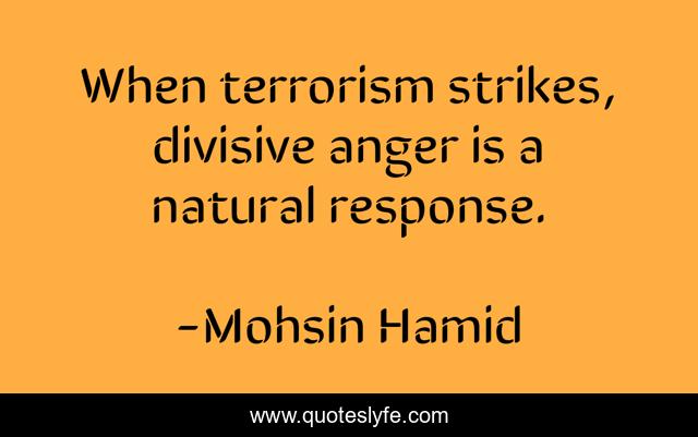 This page presents the quote "When terrorism strikes, divisive anger is a natural response.". Author of this quote is Mohsin Hamid. This quote is about terrorism, natural, response,.