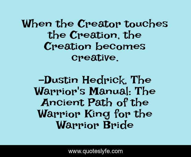 "Dustin Hedrick, The Warrior's Manual: The Ancient Path of the Warrior King for the Warrior Bride Quotes." Quoteslyfe.com, 2025. Fri. 05 Dec. 2025. <https://www.quoteslyfe.com/quote/When-the-Creator-touches-the-Creation-the-194174>.