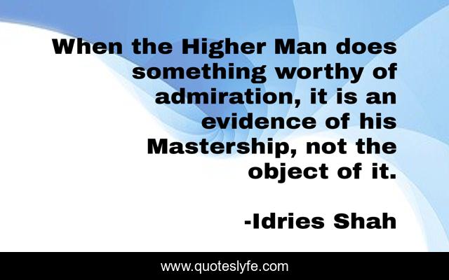 This page presents the quote "When the Higher Man does something worthy of admiration, it is an evidence of his Mastership, not the object of it.". Author of this quote is Idries Shah. This quote is about sufism, sufis, master, truth,.
