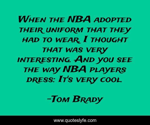 This page presents the quote "When the NBA adopted their uniform that they had to wear, I thought that was very interesting. And you see the way NBA players dress: It's very cool.". Author of this quote is Tom Brady. This quote is about thought, dress, uniform,.