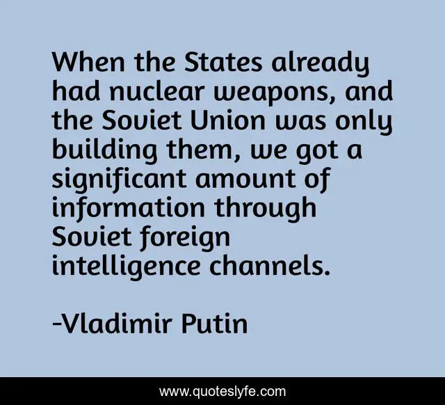 This page presents the quote "When the States already had nuclear weapons, and the Soviet Union was only building them, we got a significant amount of information through Soviet foreign intelligence channels.". Author of this quote is Vladimir Putin. This quote is about building, information,.