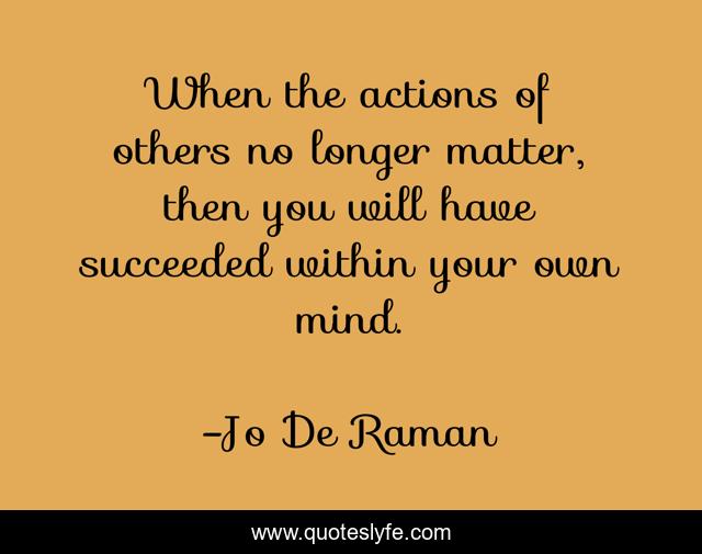 This page presents the quote "When the actions of others no longer matter, then you will have succeeded within your own mind.". Author of this quote is Jo De Raman. This quote is about balanced-life, negative-thinking, personal-freedom, change-your-life, self-love, mind-body-spirit, spirituality, negative-energy, inspirational,.