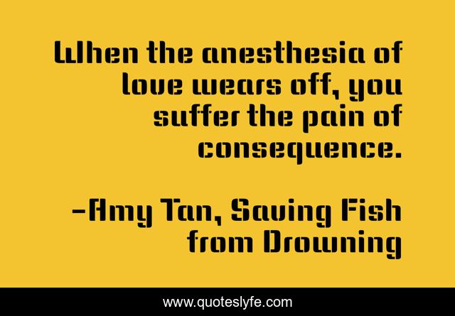This page presents the quote "When the anesthesia of love wears off, you suffer the pain of consequence.". Author of this quote is Amy Tan, Saving Fish from Drowning. This quote is about heart, heartbreak, love, affection,.