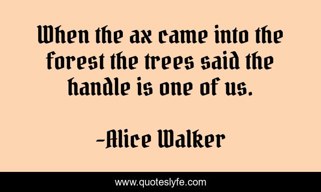 "Alice Walker Quotes." Quoteslyfe.com, 2025. Sun. 14 Dec. 2025. <https://www.quoteslyfe.com/quote/When-the-ax-came-into-the-forest-201255>.