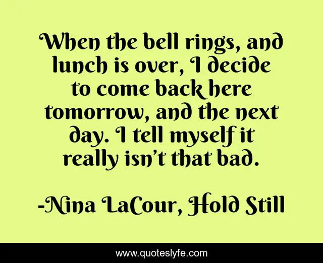 "Nina LaCour, Hold Still Quotes." Quoteslyfe.com, 2025. Tue. 09 Dec. 2025. <https://www.quoteslyfe.com/quote/When-the-bell-rings-and-lunch-is-144549>.