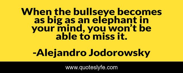This page presents the quote "When the bullseye becomes as big as an elephant in your mind, you won’t be able to miss it.". Author of this quote is Alejandro Jodorowsky. This quote is about elephant, focus, bullseye,.