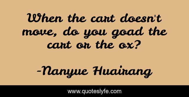 This page presents the quote "When the cart doesn't move, do you goad the cart or the ox?". Author of this quote is Nanyue Huairang. .