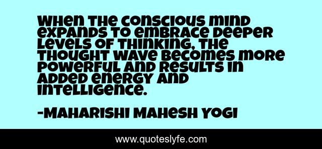 This page presents the quote "When the conscious mind expands to embrace deeper levels of thinking, the thought wave becomes more powerful and results in added energy and intelligence.". Author of this quote is Maharishi Mahesh Yogi. This quote is about thinking, powerful, mind,.