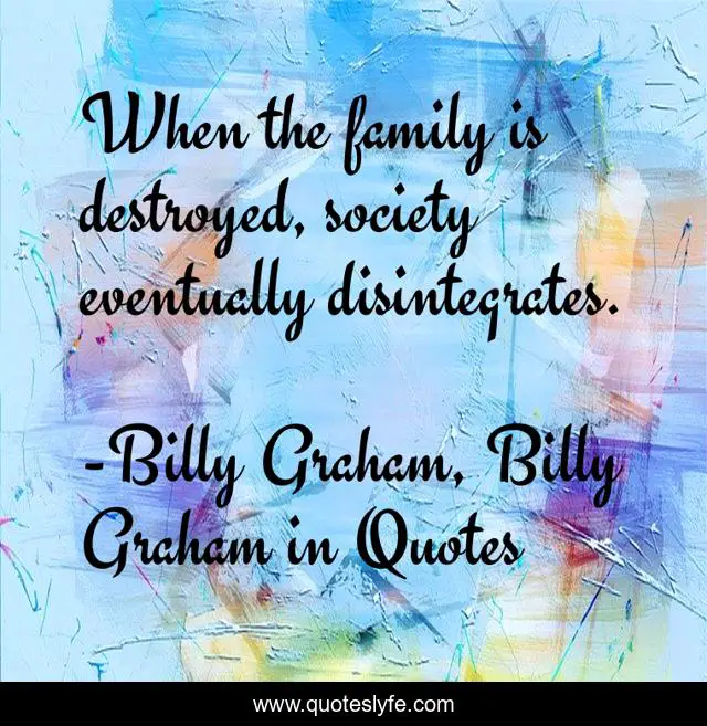 "Billy Graham, Billy Graham in Quotes Quotes." Quoteslyfe.com, 2025. Mon. 08 Dec. 2025. <https://www.quoteslyfe.com/quote/When-the-family-is-destroyed-society-eventually-86279>.
