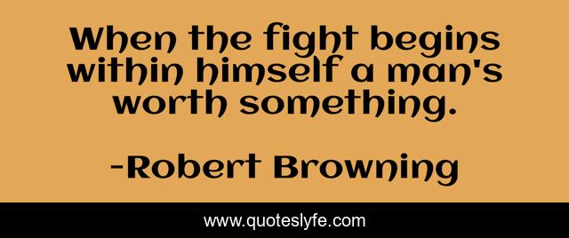 This page presents the quote "When the fight begins within himself a man's worth something.". Author of this quote is Robert Browning. This quote is about control, self,.