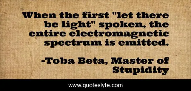 "Toba Beta, Master of Stupidity Quotes." Quoteslyfe.com, 2025. Fri. 05 Dec. 2025. <https://www.quoteslyfe.com/quote/When-the-first-let-there-be-light-118854>.