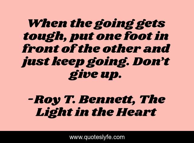 "Roy T. Bennett, The Light in the Heart Quotes." Quoteslyfe.com, 2025. Mon. 08 Dec. 2025. <https://www.quoteslyfe.com/quote/When-the-going-gets-tough-put-one-2043>.