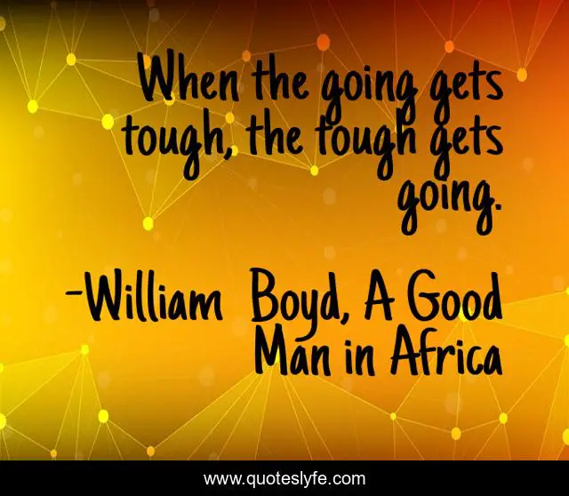This page presents the quote "When the going gets tough, the tough gets going.". Author of this quote is William Boyd, A Good Man in Africa. This quote is about colonial-africa, 20th-century, english-litterature, novel,.