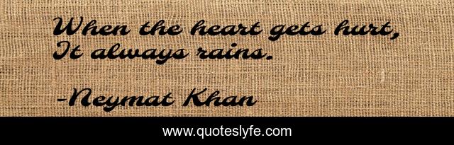 This page presents the quote "When the heart gets hurt, It always rains.". Author of this quote is Neymat Khan. This quote is about heart, life, hurt, rain, sad,.