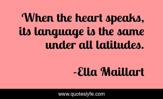 This page presents the quote "When the heart speaks, its language is the same under all latitudes.". Author of this quote is Ella Maillart. This quote is about heart, language, same,.
