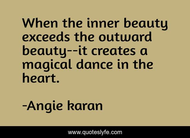 This page presents the quote "When the inner beauty exceeds the outward beauty--it creates a magical dance in the heart.". Author of this quote is Angie karan. This quote is about beauty, inner-beauty, angie-karan, outer-beauty, magical-dance-in-the-heart,.