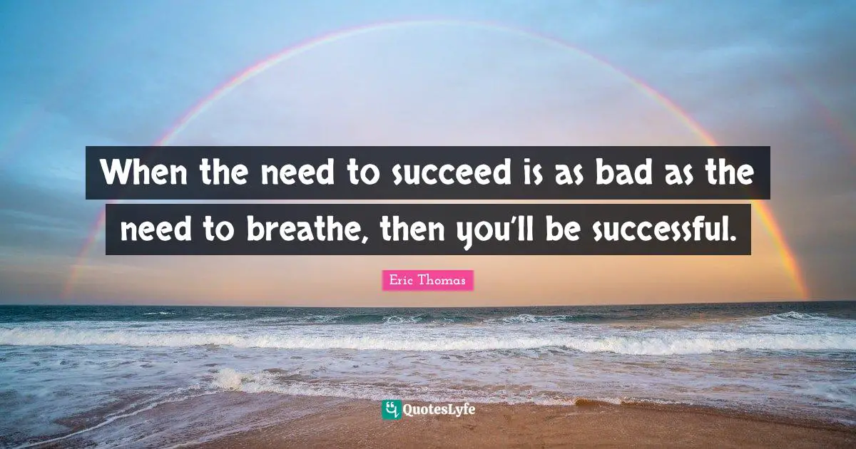 This page presents the quote "When the need to succeed is as bad as the need to breathe, then you’ll be successful.". Author of this quote is Eric Thomas. This quote is about motivational, success, successful,.