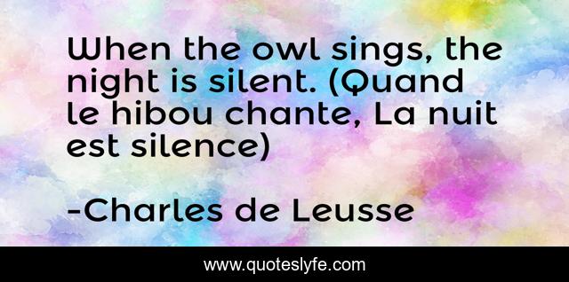 This page presents the quote "When the owl sings, the night is silent. (Quand le hibou chante, La nuit est silence)". Author of this quote is Charles de Leusse. This quote is about owl, hibou, silent, nuit, night, silence,.