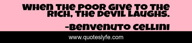 This page presents the quote "When the poor give to the rich, the devil laughs.". Author of this quote is Benvenuto Cellini. This quote is about poor, devil, artist, quotes, rich, cellini,.