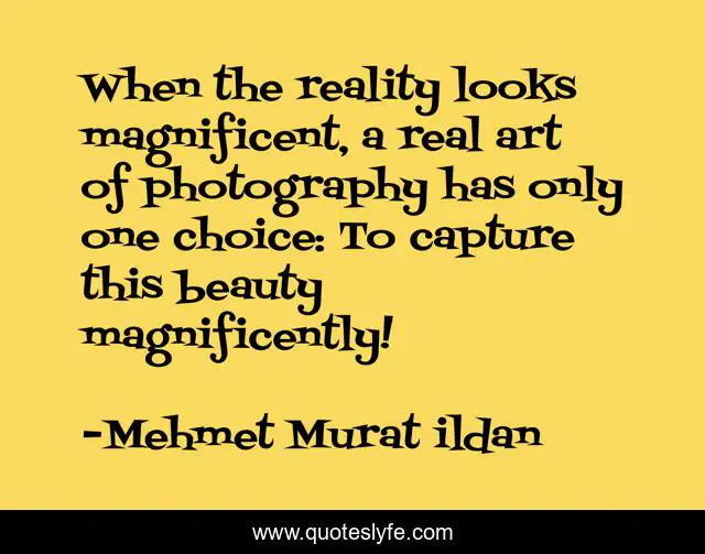 This page presents the quote "When the reality looks magnificent, a real art of photography has only one choice: To capture this beauty magnificently!". Author of this quote is Mehmet Murat ildan. This quote is about photographs, murat-ildan, photography, reality, magnificient, art-of-photography,.