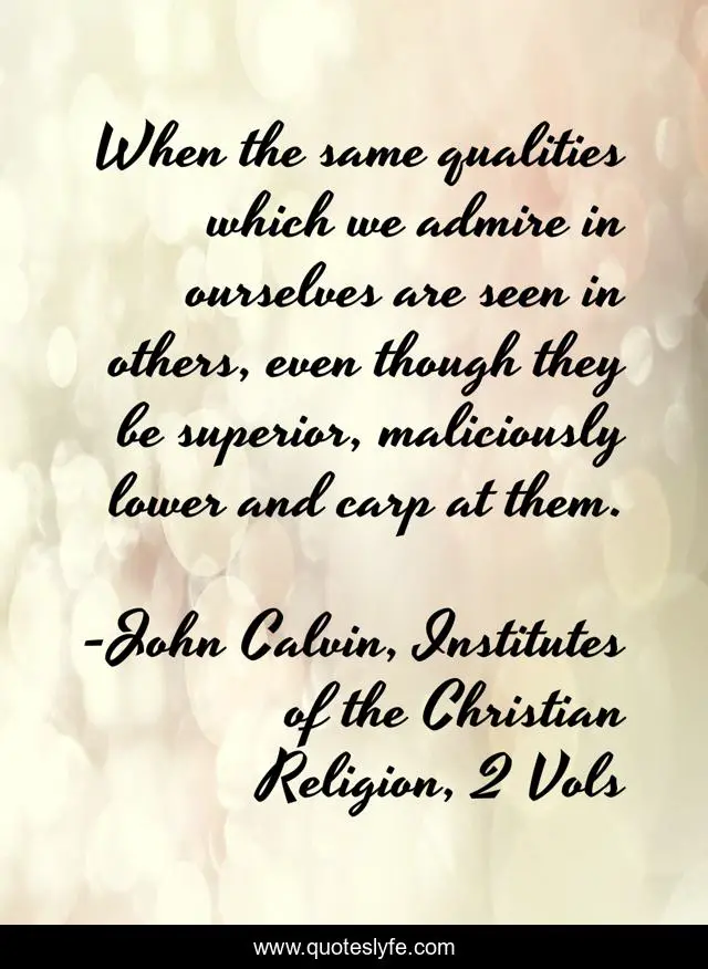 This page presents the quote "When the same qualities which we admire in ourselves are seen in others, even though they be superior, maliciously lower and carp at them.". Author of this quote is John Calvin, Institutes of the Christian Religion, 2 Vols. This quote is about selfishness, envy,.