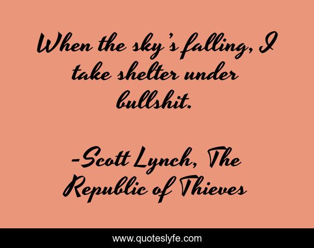This page presents the quote "When the sky’s falling, I take shelter under bullshit.". Author of this quote is Scott Lynch, The Republic of Thieves. This quote is about bullshit, lying,.