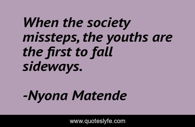 This page presents the quote "When the society missteps, the youths are the first to fall sideways.". Author of this quote is Nyona Matende. This quote is about youth, society-problem,.