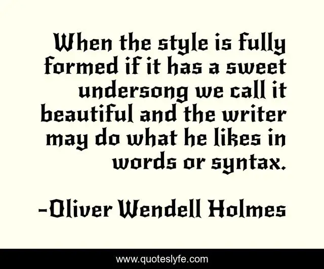 "Oliver Wendell Holmes Quotes." Quoteslyfe.com, 2025. Fri. 05 Dec. 2025. <https://www.quoteslyfe.com/quote/When-the-style-is-fully-formed-if-279529>.