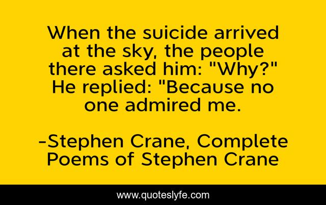 "Stephen Crane, Complete Poems of Stephen Crane Quotes." Quoteslyfe.com, 2025. Mon. 08 Dec. 2025. <https://www.quoteslyfe.com/quote/When-the-suicide-arrived-at-the-sky-21083>.