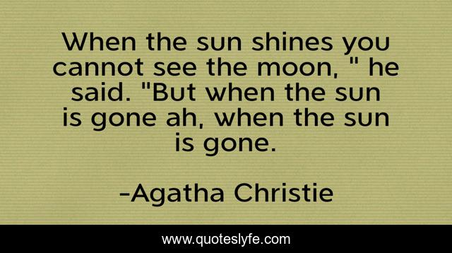 This page presents the quote "When the sun shines you cannot see the moon, " he said. "But when the sun is gone ah, when the sun is gone.". Author of this quote is Agatha Christie. .