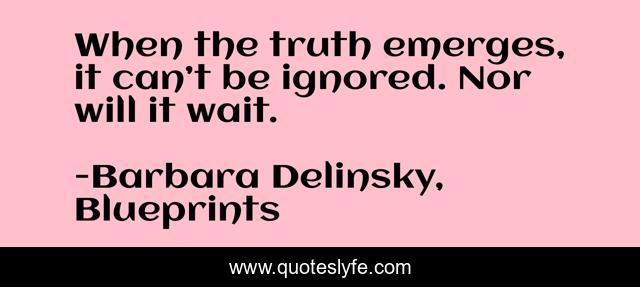 This page presents the quote "When the truth emerges, it can’t be ignored. Nor will it wait.". Author of this quote is Barbara Delinsky, Blueprints. This quote is about honesty, telling-the-truth, truth, women-writers, women-s-fiction, women,.