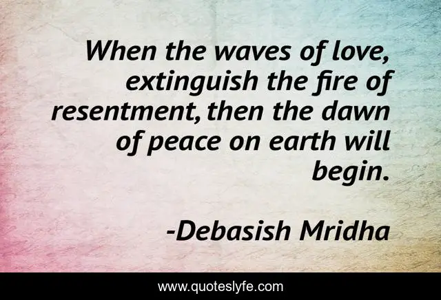 This page presents the quote "When the waves of love, extinguish the fire of resentment, then the dawn of peace on earth will begin.". Author of this quote is Debasish Mridha. This quote is about waves-of-love, fire-of-resentment, peace-on-earth, philosophy, debasish-mridha, quotes, inspirational, enthusiasm, debasish-mridha-m-d,.
