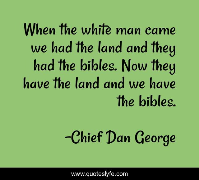 This page presents the quote "When the white man came we had the land and they had the bibles. Now they have the land and we have the bibles.". Author of this quote is Chief Dan George. This quote is about canada, canadians,.