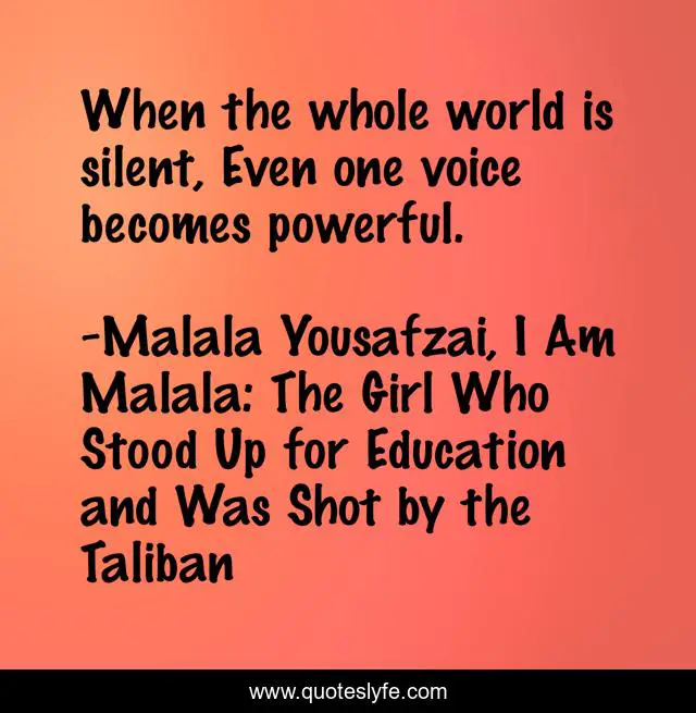 "Malala Yousafzai, I Am Malala: The Girl Who Stood Up for Education and Was Shot by the Taliban Quotes." Quoteslyfe.com, 2025. Fri. 05 Dec. 2025. <https://www.quoteslyfe.com/quote/When-the-whole-world-is-silent-Even-54802>.