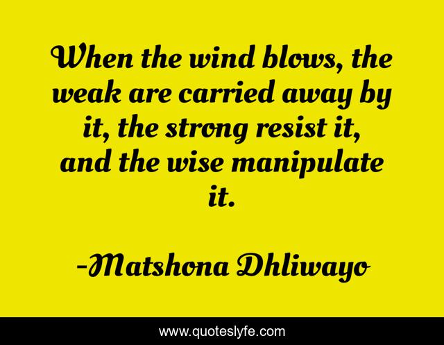 "Matshona Dhliwayo Quotes." Quoteslyfe.com, 2025. Sat. 06 Dec. 2025. <https://www.quoteslyfe.com/quote/When-the-wind-blows-the-weak-are-98610>.