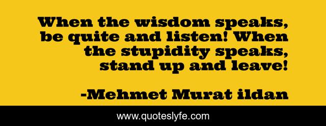 This page presents the quote "When the wisdom speaks, be quite and listen! When the stupidity speaks, stand up and leave!". Author of this quote is Mehmet Murat ildan. .