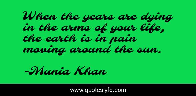 This page presents the quote "When the years are dying in the arms of your life, the earth is in pain moving around the sun.". Author of this quote is Munia Khan. This quote is about aging, life, old, around, dying, ageing, age, fade, years,.