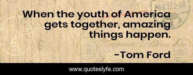 This page presents the quote "When the youth of America gets together, amazing things happen.". Author of this quote is Tom Ford. This quote is about youth, america, together,.