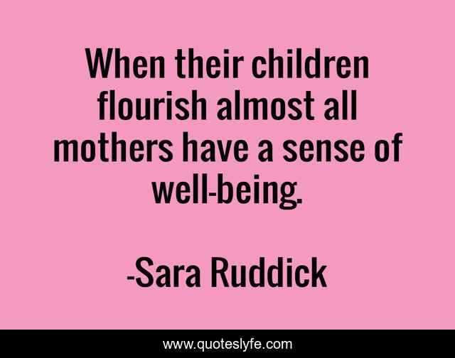 This page presents the quote "When their children flourish almost all mothers have a sense of well-being.". Author of this quote is Sara Ruddick. This quote is about helping, people,.