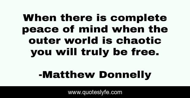 This page presents the quote "When there is complete peace of mind when the outer world is chaotic you will truly be free.". Author of this quote is Matthew Donnelly. This quote is about peace, chaos, internal-dialogue,.