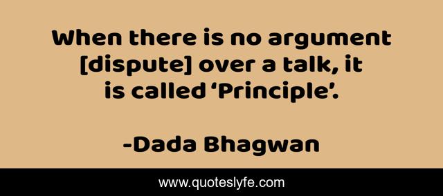 This page presents the quote "When there is no argument [dispute] over a talk, it is called ‘Principle’.". Author of this quote is Dada Bhagwan. This quote is about spiritual, dispute, principle, argument,.