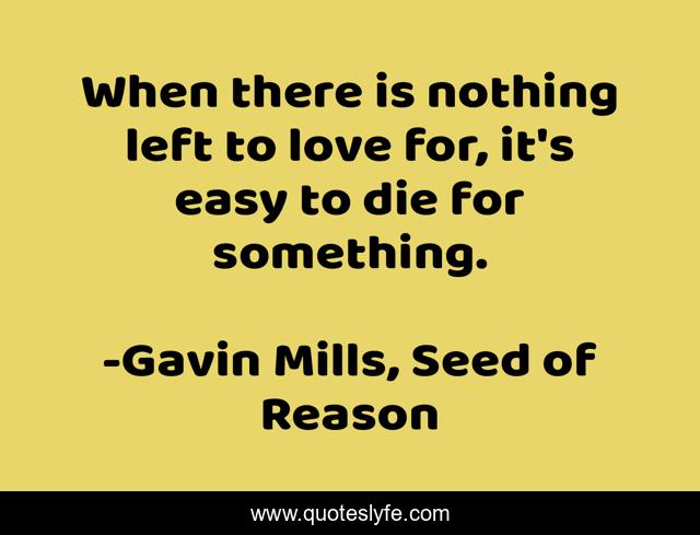 This page presents the quote "When there is nothing left to love for, it's easy to die for something.". Author of this quote is Gavin Mills, Seed of Reason. This quote is about truth-of-life, humanity, life-lessons,.