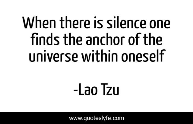 This page presents the quote "When there is silence one finds the anchor of the universe within oneself". Author of this quote is Lao Tzu. This quote is about meditation, mind-body-spirit, stillness-of-the-mind,.